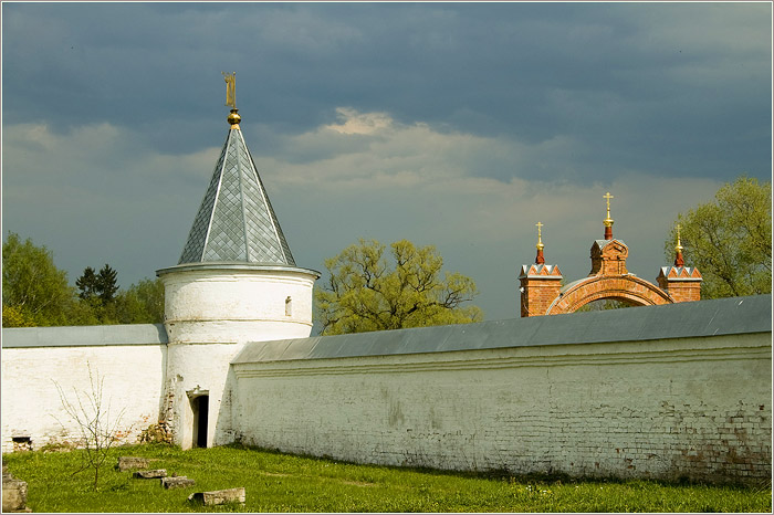 Ограда монастыря была деревянная до 1680 года. Именно тогда началось строительство каменных стен